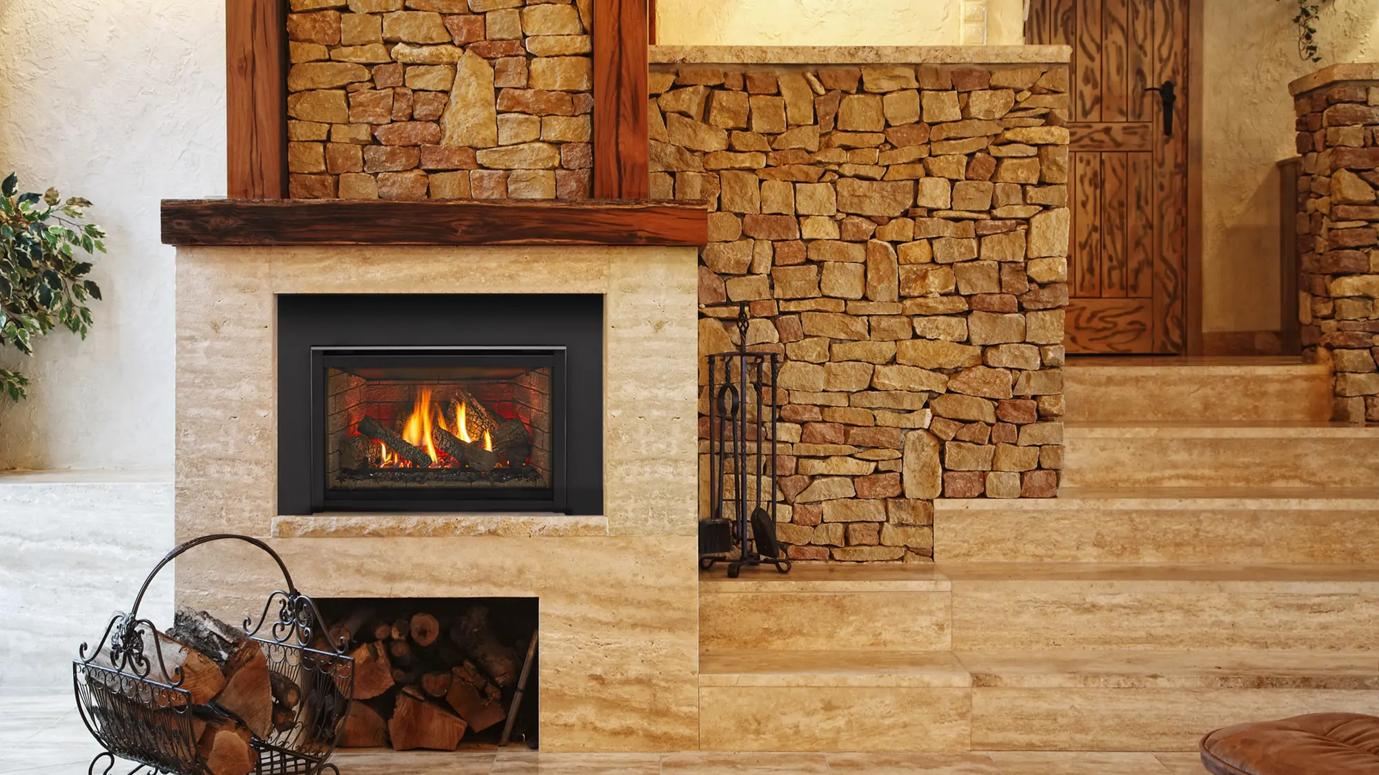 The Majestic Trilliant large direct vent gas insert with intellifire touch ignition system. All the ambiance and warmth of a split-log fire made easy, without the mess and hassle of wood. Our top-end Trilliant is fully loaded with everything you want in a gas fireplace insert, including a fan and heat exchanger to warm your space more quickly, Canyon Brown interior panels, and gorgeous accent lights for a relaxing ambiance.